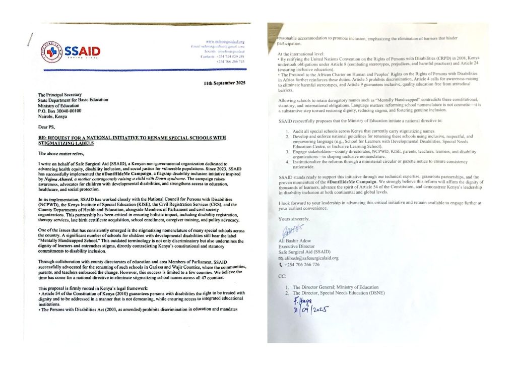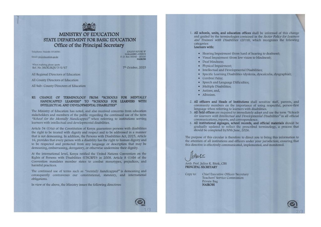 National Terminology Reform – October 2025 Following SSAID’s formal letter to the Principal Secretary, Ministry of Education (11 September 2025), the Ministry issued a nationwide circular on 7 October 2025 (Ref: MOE.HQS/3/6/67) directing all schools and education offices to immediately replace stigmatizing terms such as “mentally handicapped” with respectful, person-first language: “Schools for Learners with Intellectual and Developmental Disabilities” All signage, records, and materials to be updated by 30 June 2026. This is a direct victory of the #DontHideMe campaign.